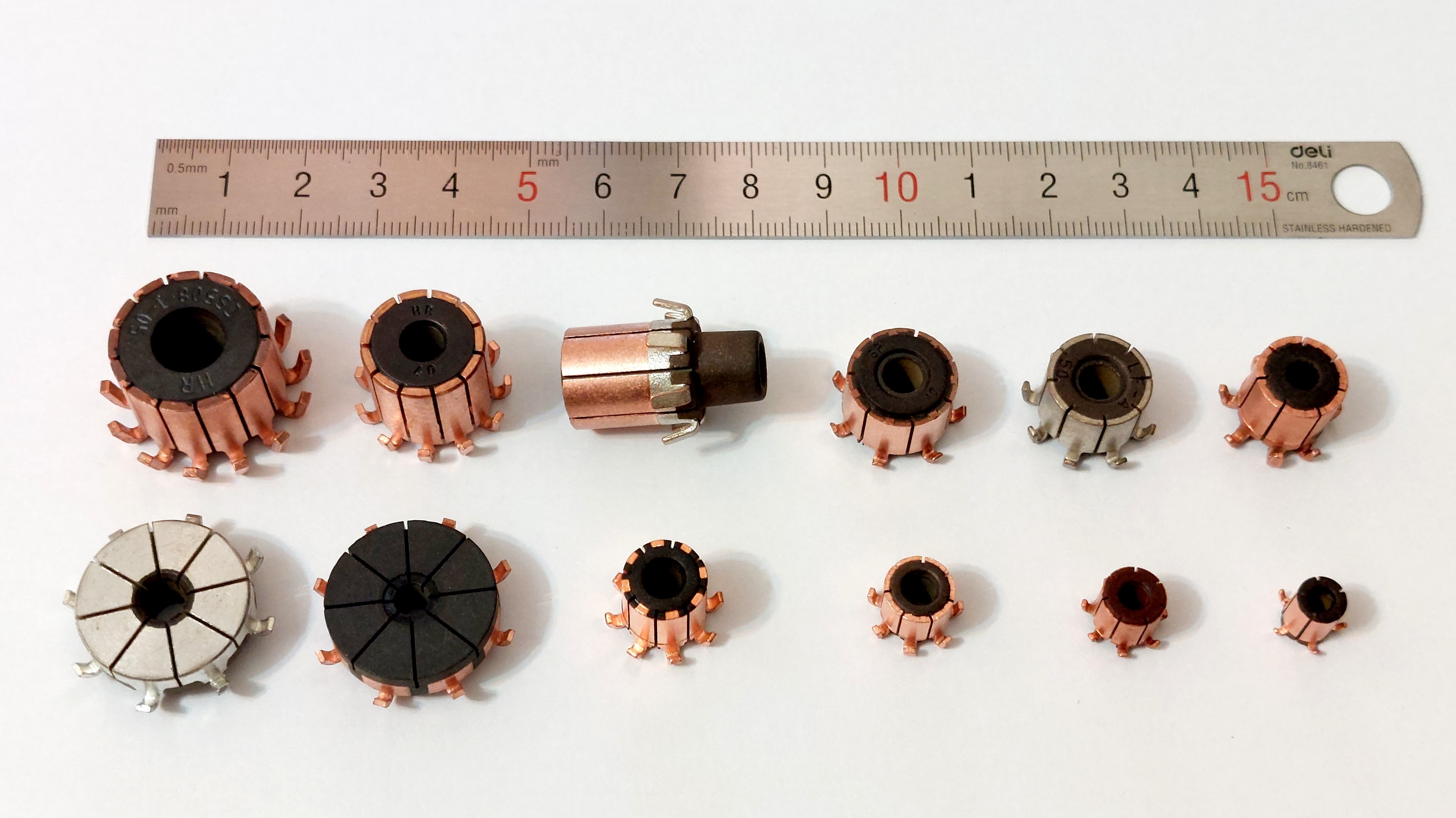 در ژنراتورهای الکتریکی و الکتروموتورهای ذغالدار از قطعه ای به نام کموتاتور (Commutator) و یا کلکتور (Collector) برای انتقال و تغییر منظم جهت جریان به روتور استفاده میشود. هر کموتاتور از تعدادی سگمنت (سطوح مسی روی آن) تشکیل شده و هر سگمنت (Segment) در انتها به شکل قلاب (Hook) در آمده است. در الکتروموتورهای ذغالدار (Brushed Electromotors) جریان از طریق ذغال وارد کموتاتور شده و از مسیر سیم متصل به هر قلاب وارد فضای سیم پیچ روتور گردیده و در نهایت تحت تاثیر میدان الکترومغناطیسی، روتور به چرخش در می آید. فرایند انتقال جریان از ذغال به سیم پیچ روتور که توسط کموتاتور صورت گرفته و منجر به چرخش روتور میگردد، کموتاسیون نام دارد. از خدمات شرکت پرگاس صنعت فرتاک تامین طیف گسترده ای از کموتاتورها جهت استفاده در الکتروموتورها و ژنراتورهای الکتریکی میباشد.