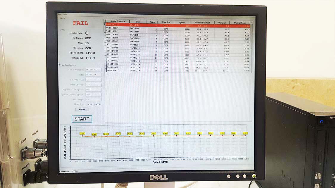 اعمال سرعت تا 18,000 RPM و اندازه گیری ولتاژ خروجی بر حسب سرعت