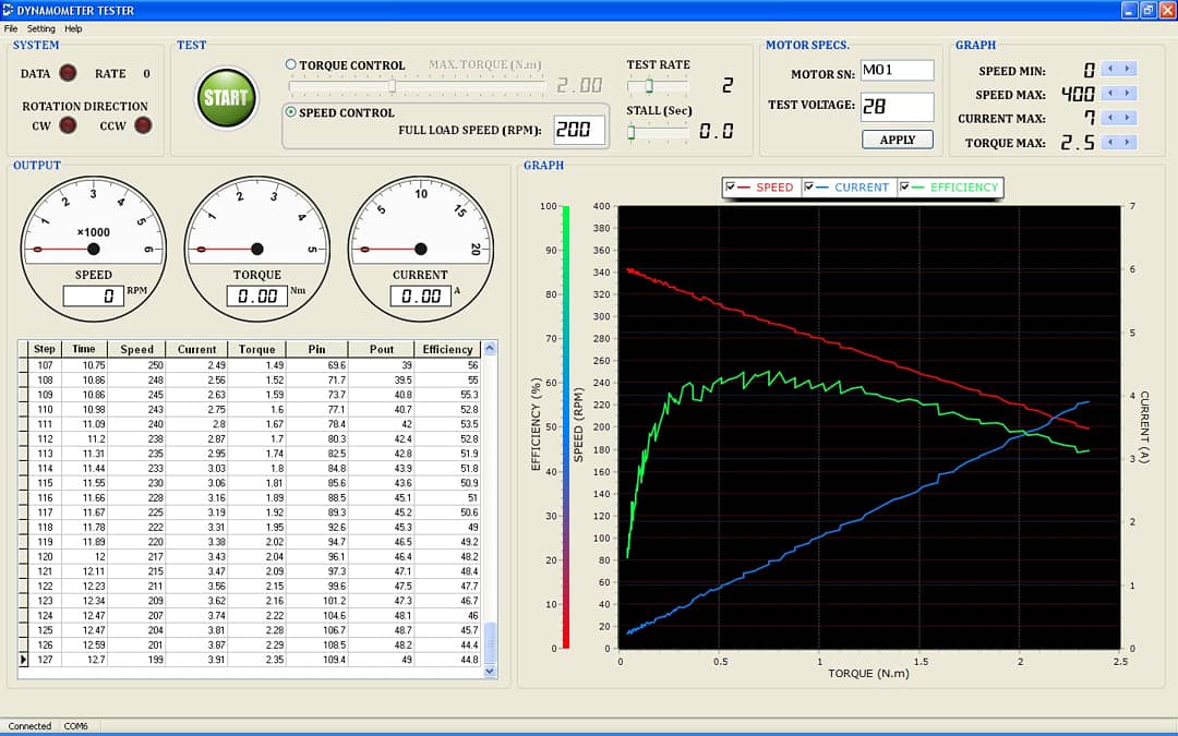 • اندازه گیری سرعت، گشتاور و جریان از بی باری تا بار کامل